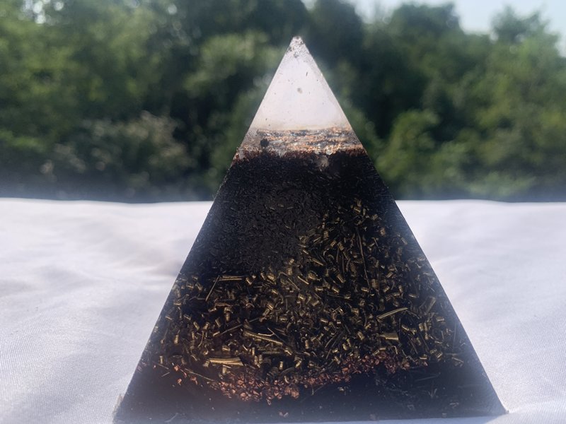You will receive a lovely powerful aesthetic Orgone energy pyramid! This Orgone Energy pyramid is hand made and designed to increase positive energy fields in any surroundings especially those surroundings heavily saturated with EMF and wifi signals. Our units are priced very fairly according to components and labor. All of our units are tested with EMF meters before being shipped to ensure functionality. There is no such thing as a wrong occasion for giving Orgone products away as gifts. Birthday gifts, wedding gifts, holiday gifts, special occasions, or simply helping to inspire someone who is feeling depressed these products will surely deliver a robust boost in positivity and will surely inspire happier moods. Watch EMF symptoms get eliminated or greatly reduced by the power and presence of Orgone energy. Kay Jay wellness is here to help! Remember this set is not your typical over priced under performing FANCY SHINY PLASTIC imitation Orgone pyramids that you see clogging the platform sites that are a dime a dozen, no way these are the absolute real deal! Well constructed to provide that continuous free energy output which may provide a boost of power and energy needed for mental clarity, stillness of mind, ever present calm, creativity, meditation, relaxation, emf protection, mitigation of electro-smog, etc.