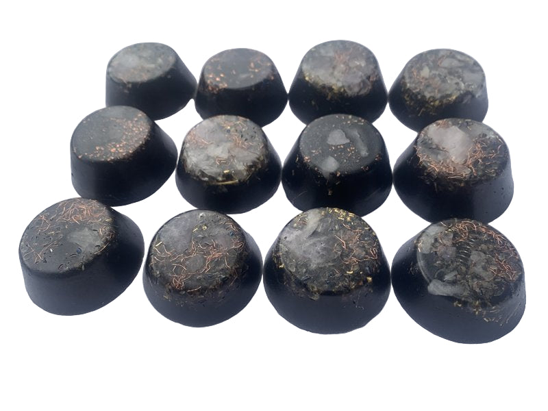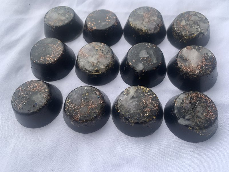 You will receive a KayJay Wellness hand made set of 12 Orgone Energy Wellness pucks! This Orgone Energy gift set is hand made and designed to increase positive energy fields in any surroundings especially those surroundings heavily saturated with EMF and wifi signals. Our units are priced very fairly according to components and labor. All of our units are tested with EMF meters before being shipped to ensure functionality. There is no such thing as a wrong occasion for giving Orgone products away as gifts. Birthday gifts, wedding gifts, holiday gifts, special occasions, or simply helping to inspire someone who is feeling depressed these products will surely deliver a robust boost in positivity and will surely inspire happier moods. Watch EMF symptoms get eliminated or greatly reduced by the power and presence of Orgone energy. Kay Jay wellness is here to help! Remember this set is not your typical over priced under performing FANCY SHINY PLASTIC imitation Orgone pyramids that you see clogging the platform sites that are a dime a dozen, no way these are the absolute real deal! Well constructed to provide that continuous free energy output which may provide a boost of power and energy needed for mental clarity, stillness of mind, ever present calm, creativity, meditation, relaxation, emf protection, mitigation of electro-smog, etc.