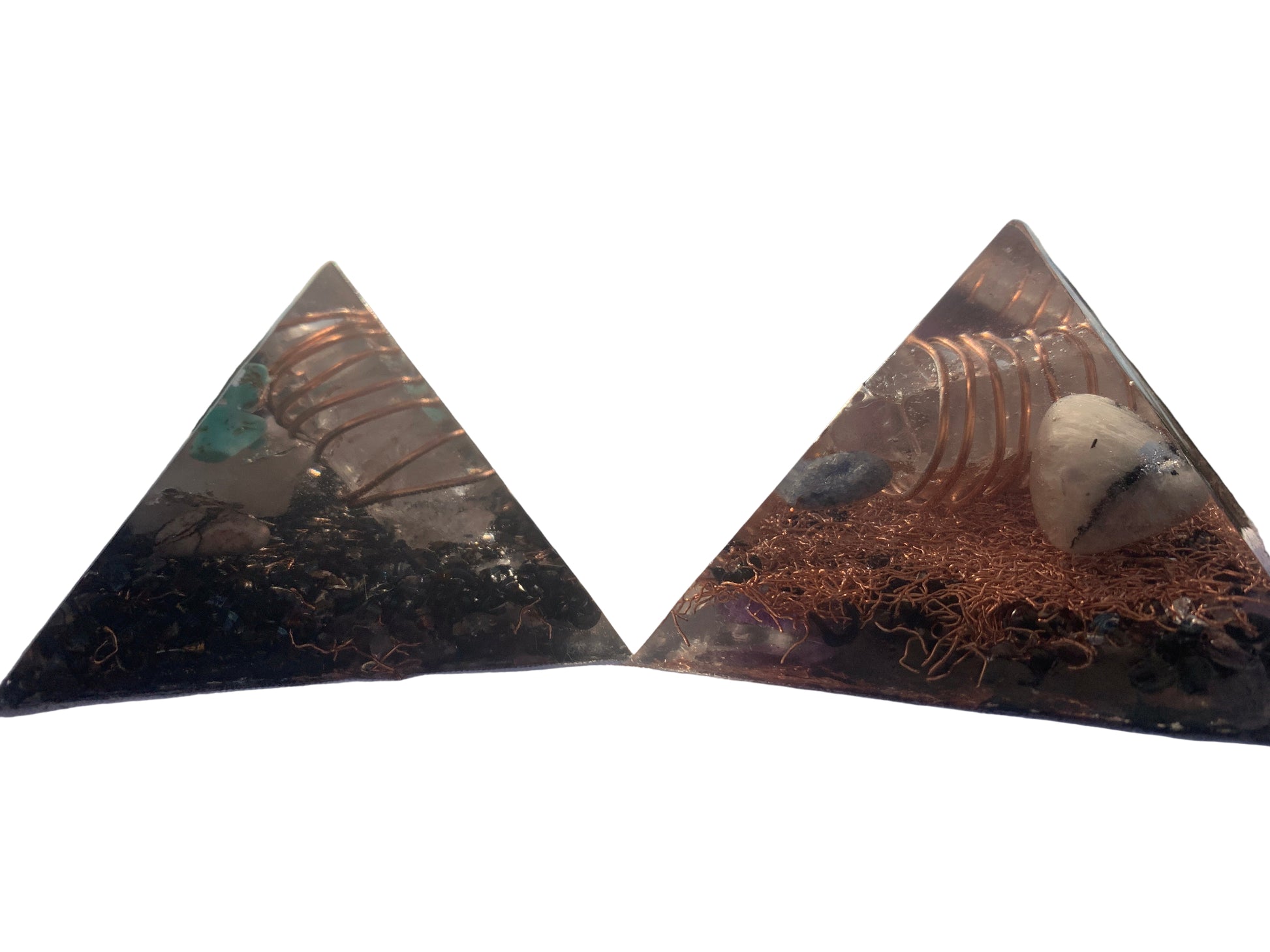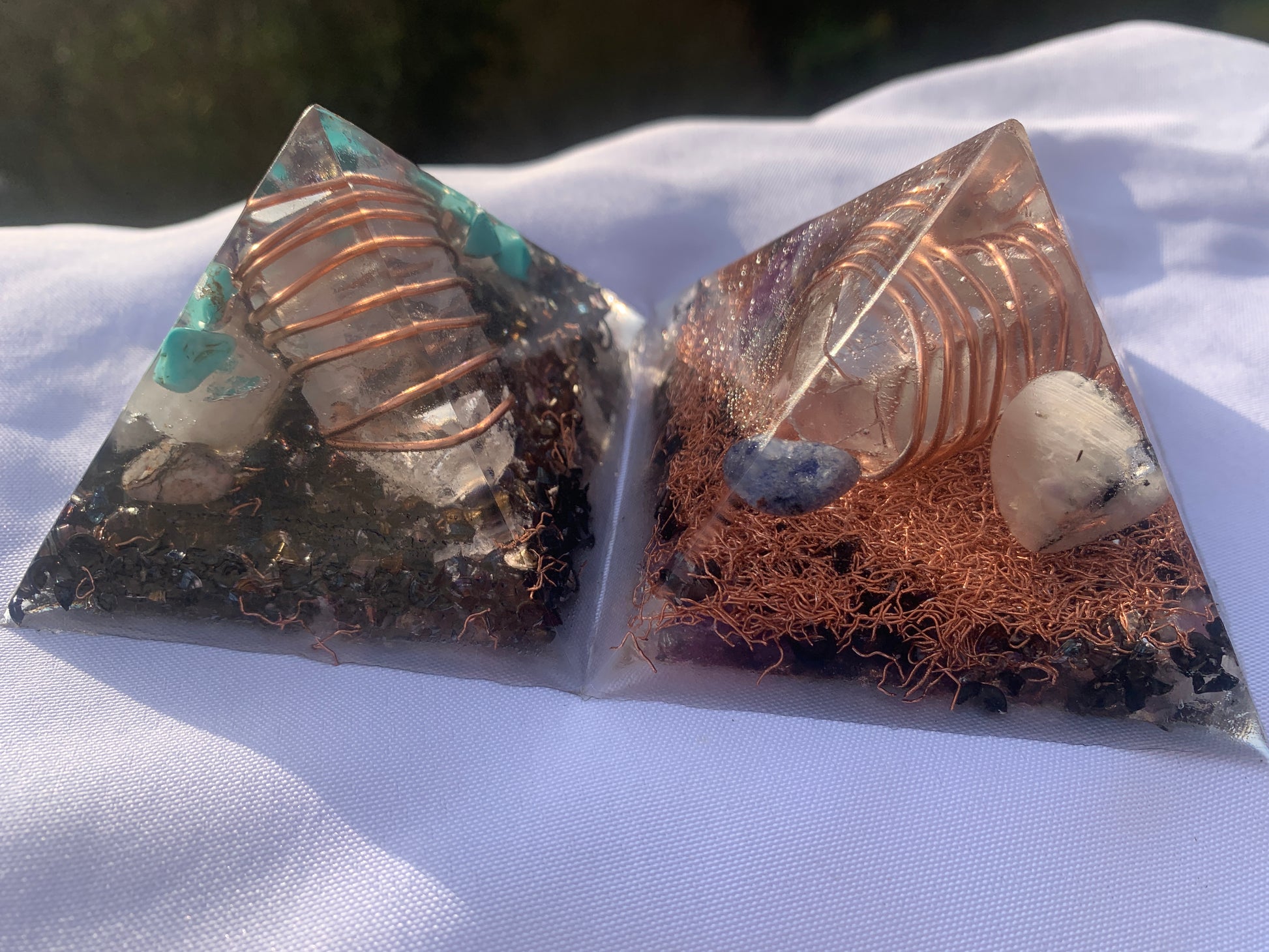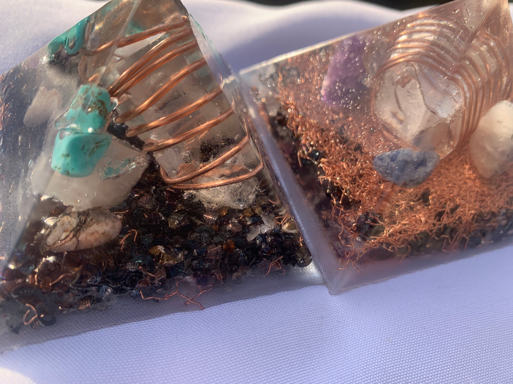 2 lovely hand made powerful emf protection and meditaion enhancer! improve sleep and meditation with these very carefully hand made orgone generating pyramids!