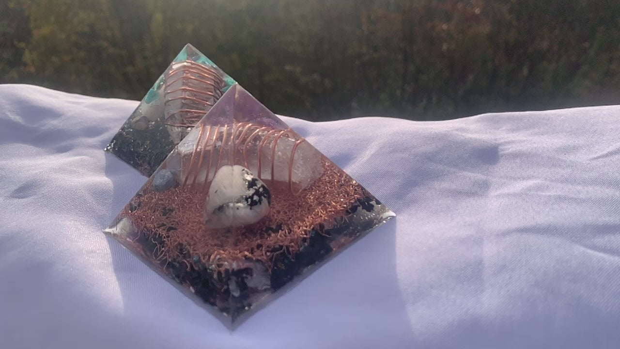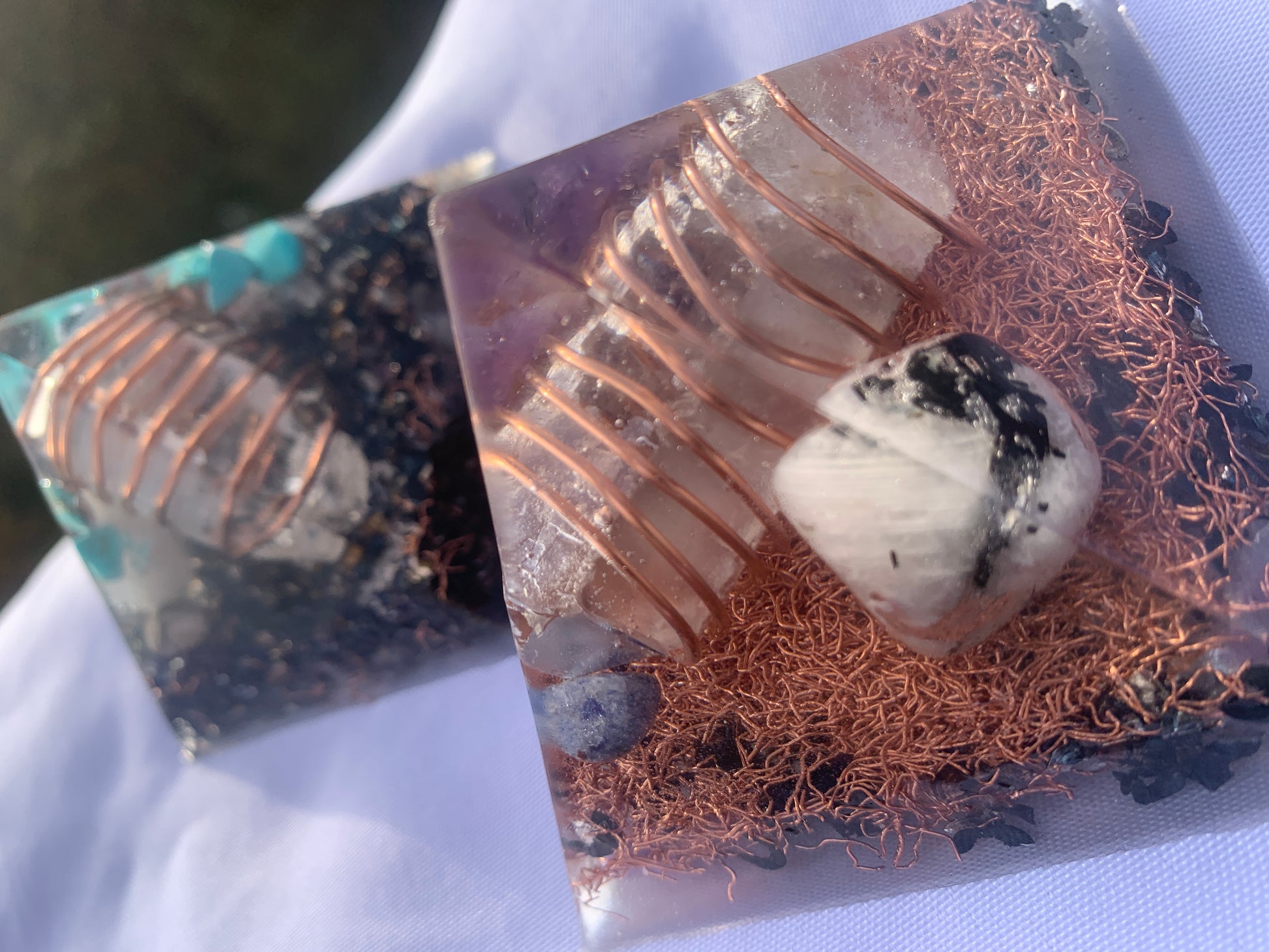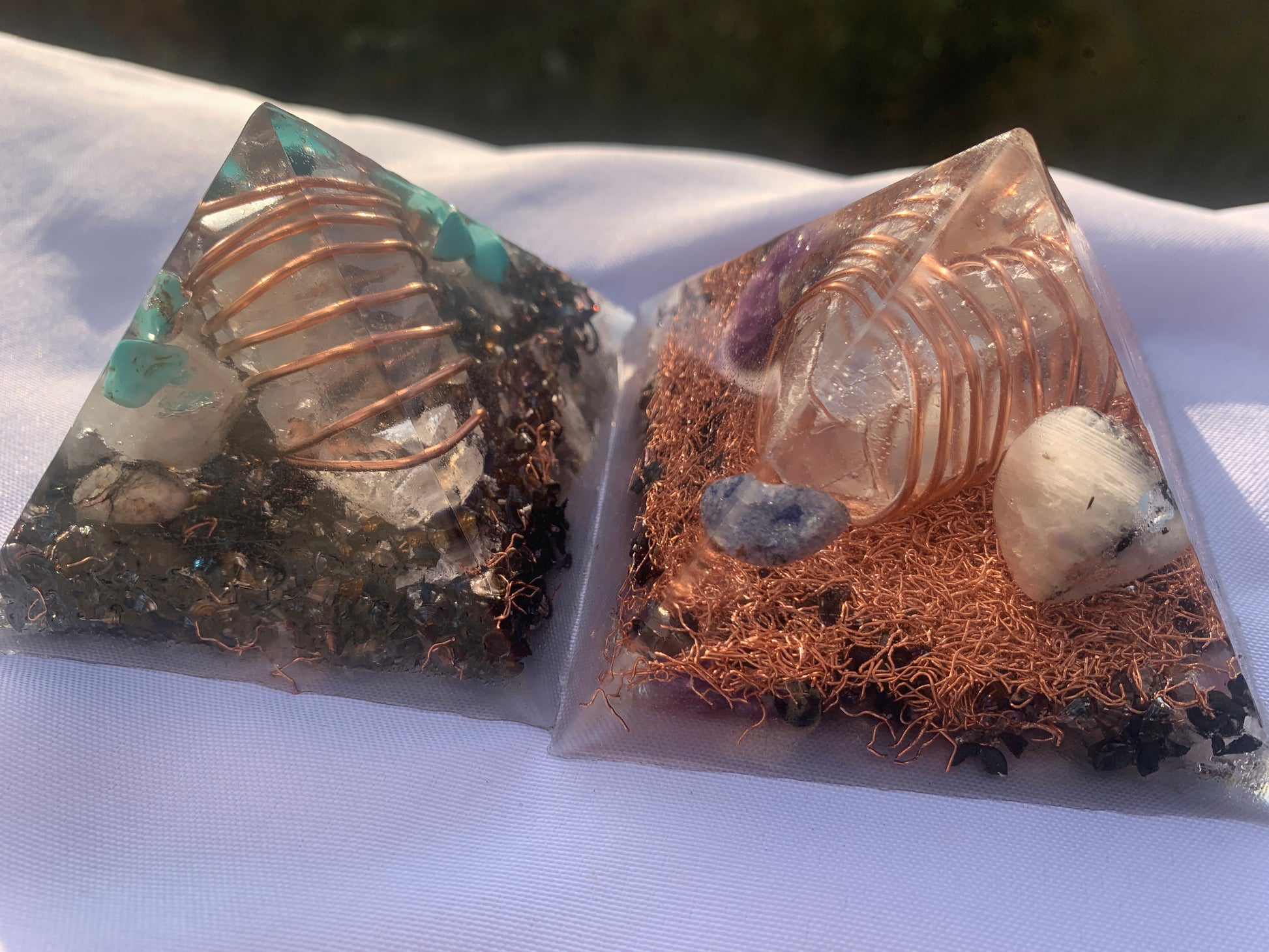 2 lovely hand made powerful emf protection and meditaion enhancer! improve sleep and meditation with these very carefully hand made orgone generating pyramids!