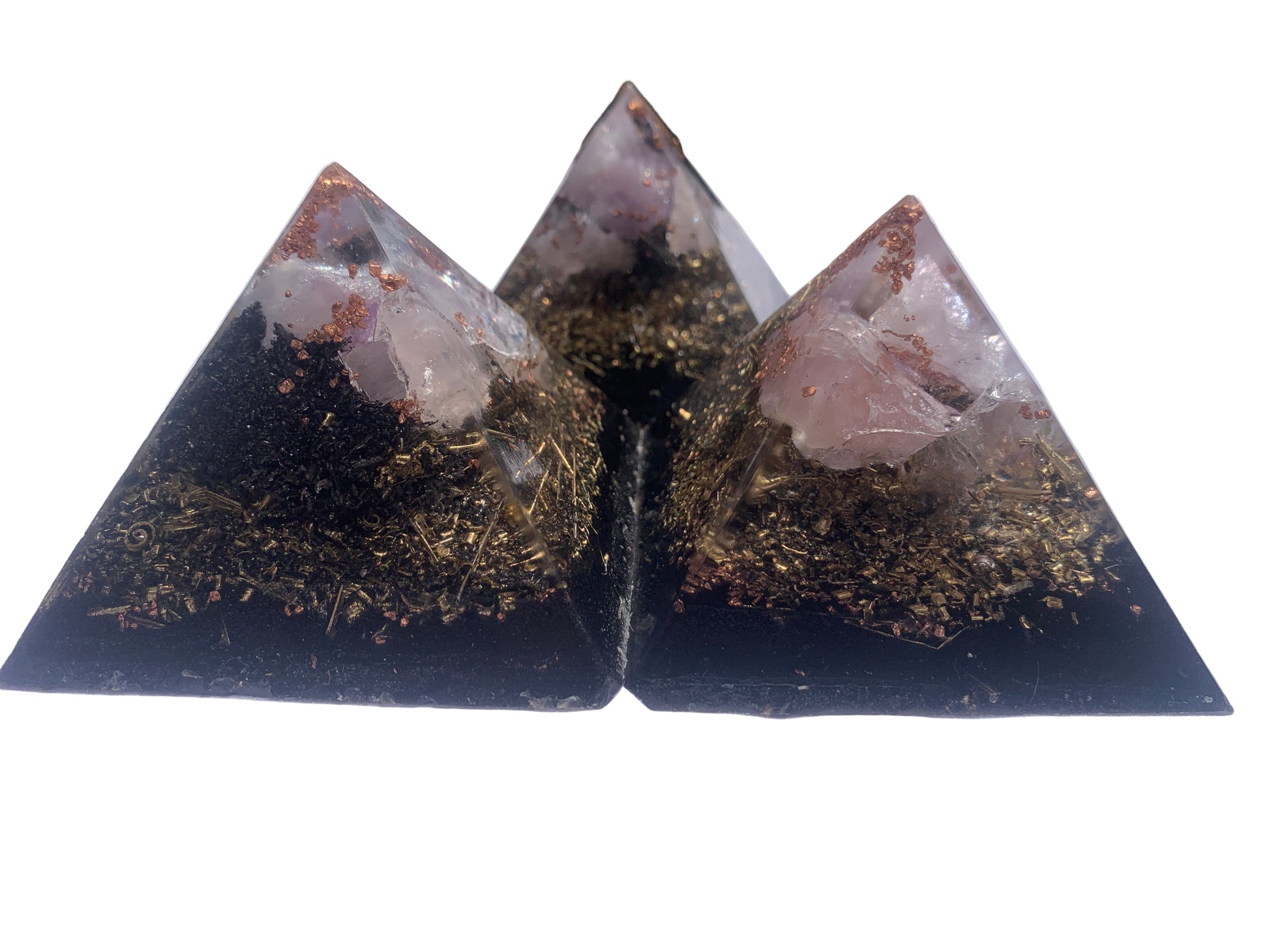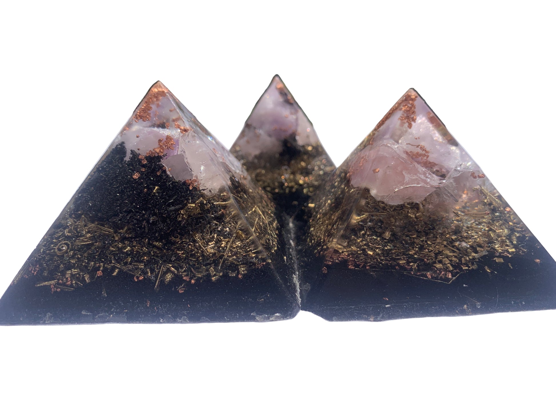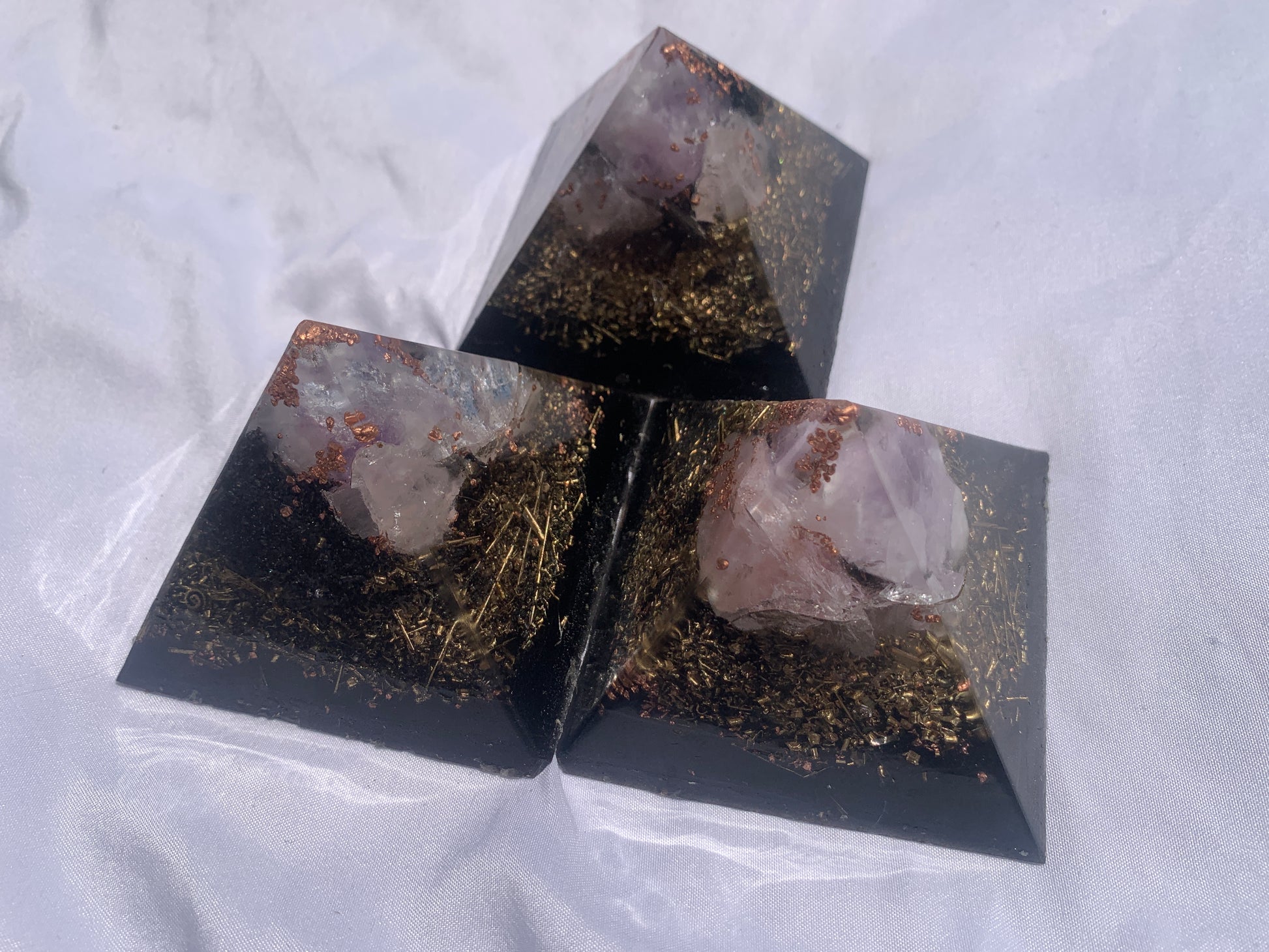 set of 3 hand made KayJay wellness Orgone Energy pyramids