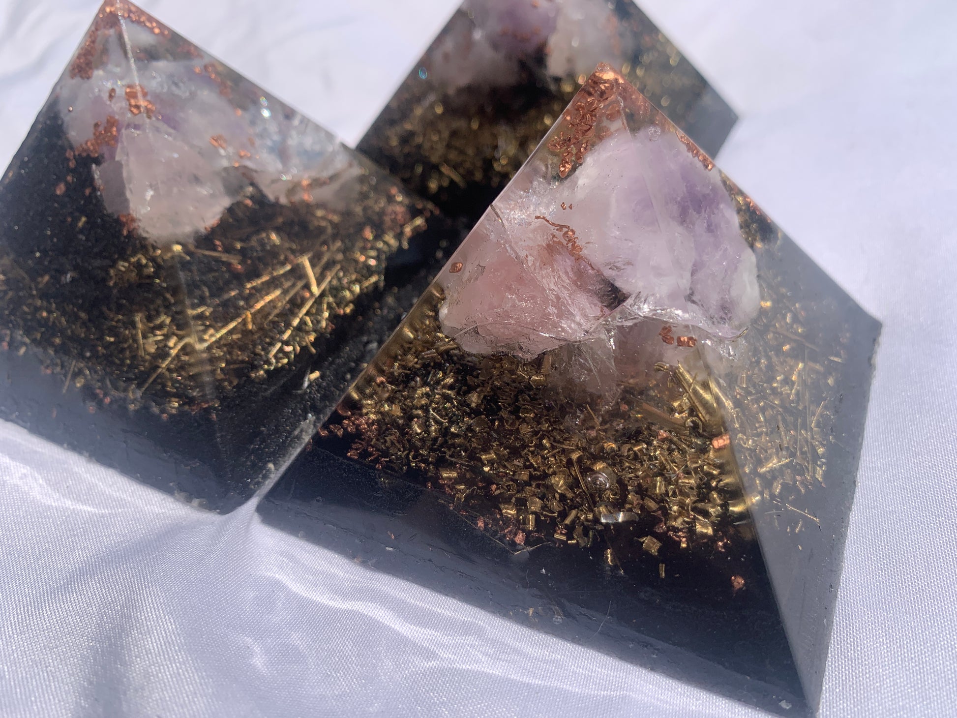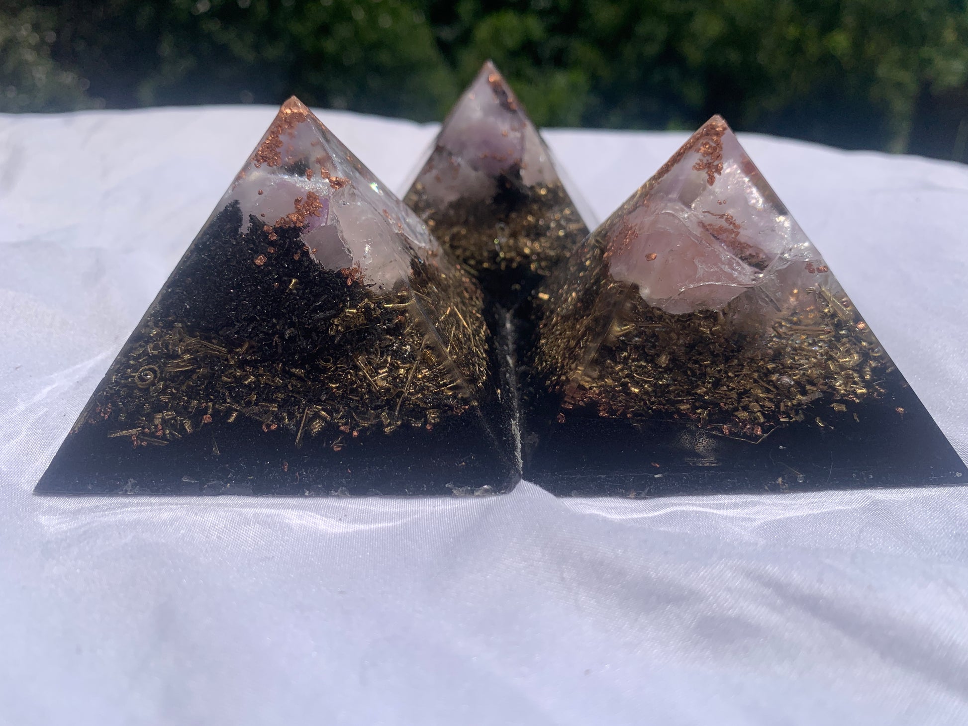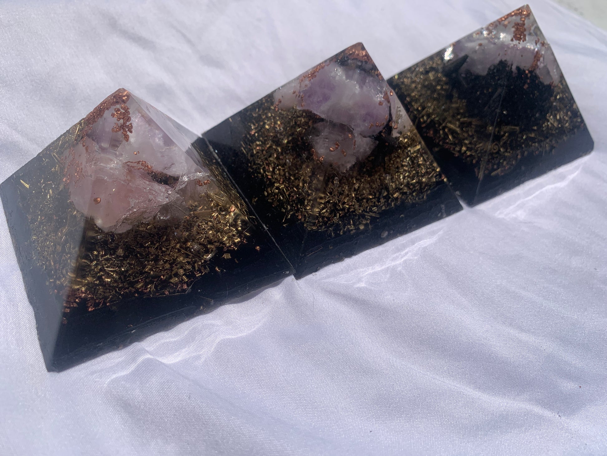 set of 3 hand made KayJay wellness Orgone Energy pyramids
