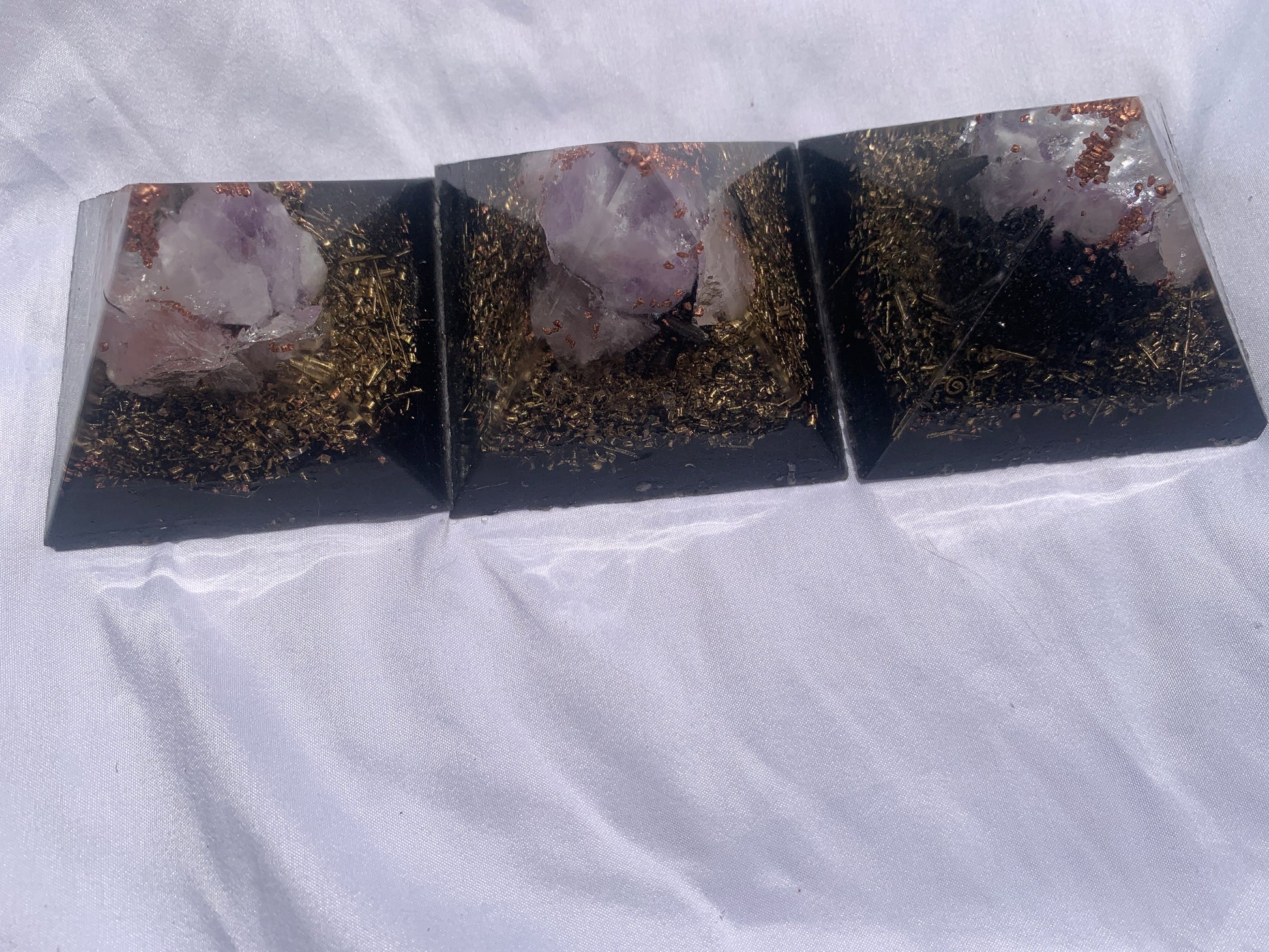 set of 3 authentic hand made KayJay wellness Orgone Energy pyramids -